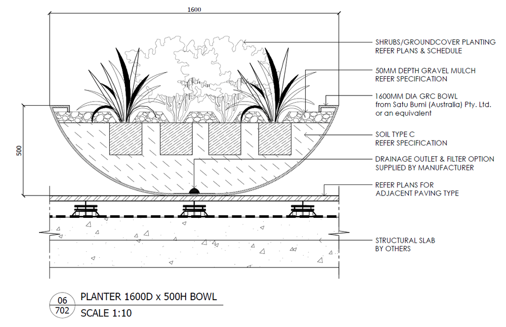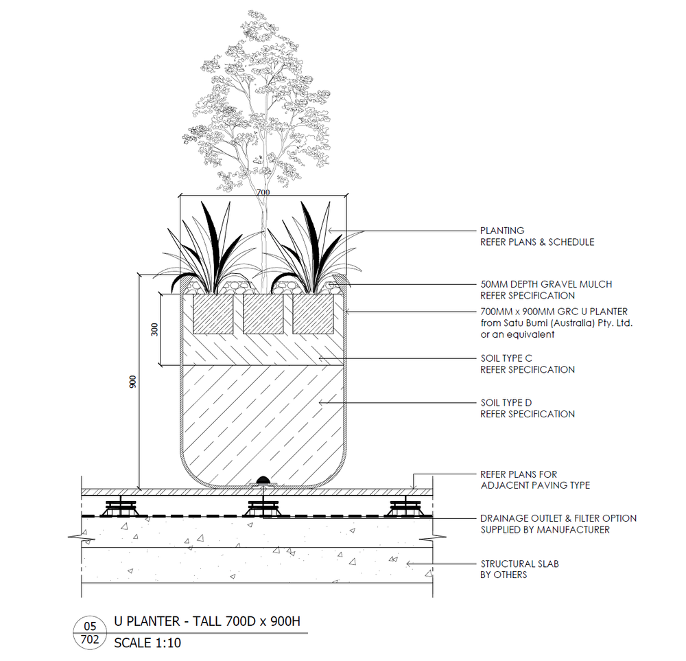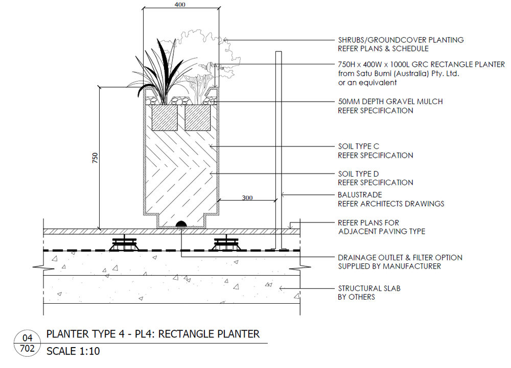 The following typical GRC planter detail drawings have been made available by Satu Bumi in DWG format to be used in architectural drawings free of charge or obligation.