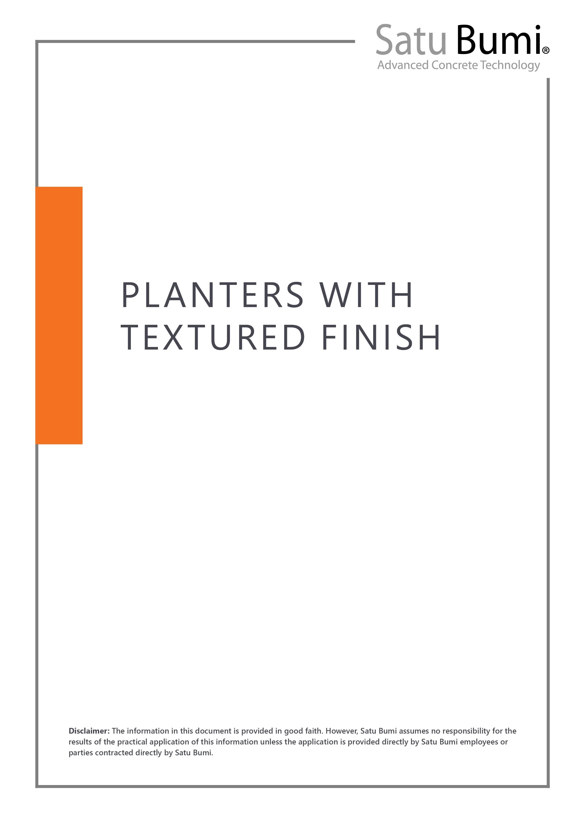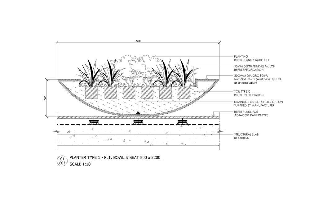 As a manufacturer, Satu Bumi recognizes the mutual benefit of working collaboratively with architects in the early design stages of the development of commercial projects that required GRC planters and/or GRC street furniture. In essence, early recognition of practical design issues with planters and street furniture can facilitate more accurate preliminary cost estimates, more functional tendering documentation, and assist in making the sourcing and procurement of these items more controllable for everybody involved. Therefore, Satu Bumi is prepared to engage with architects in the design stage of new projects, at no charge, to assist on any issues that may relate to the inclusion of GRC planters and/or GRC street furniture. This may include recommendations on design considerations, preliminary design drawings for custom designs, preliminary pricing, or recommendations on practical ways to minimize cost.