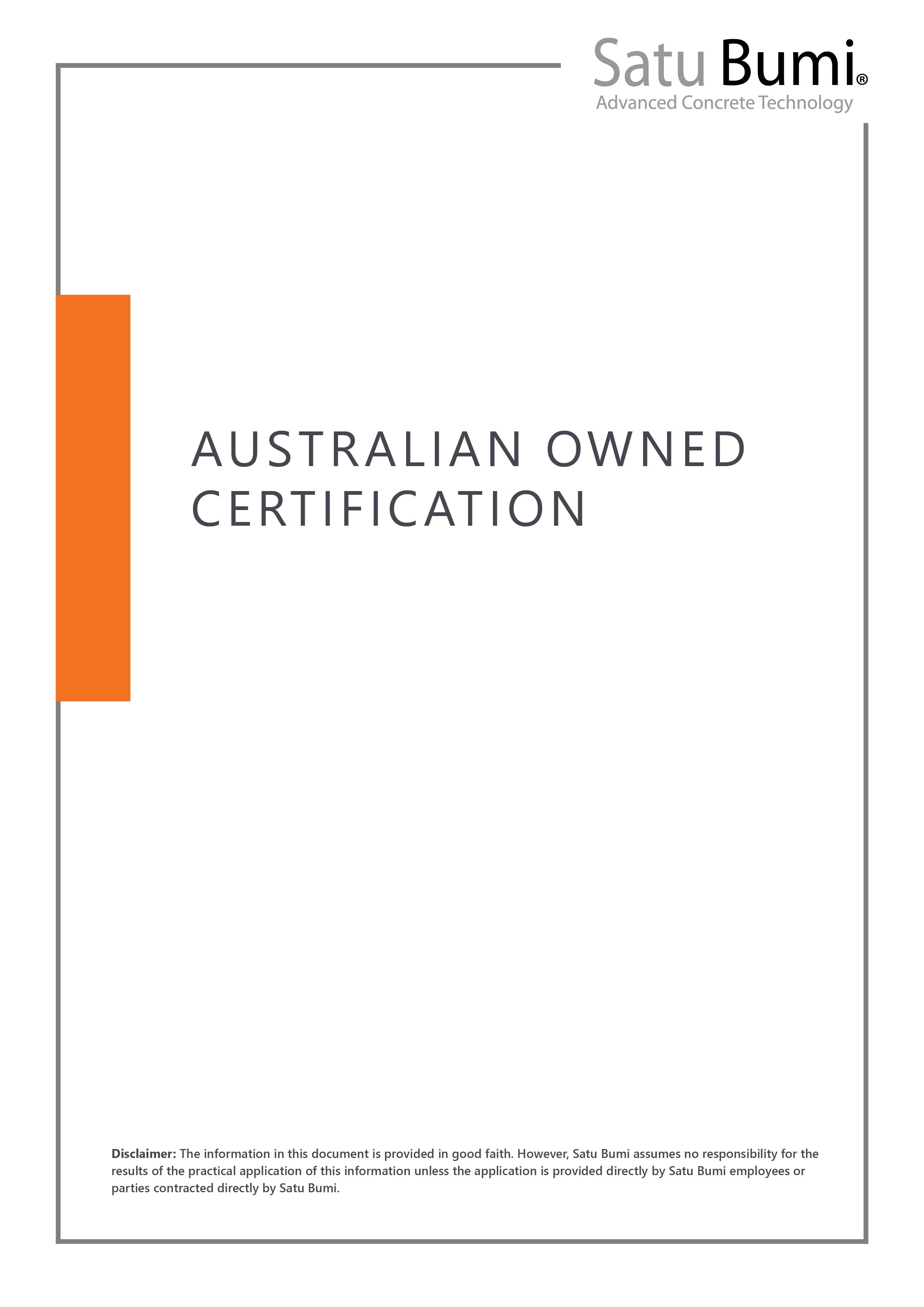 The preparation and free access to the documents in this Document Library have been provided in good faith. However, Satu Bumi (Australia) Pty. Ltd. will take no responsibility for any actions taken by readers of the documents. Therefore, it is the responsibility of the readers of the documents to ensure they take full responsibility for any actions they take subsequent to reading any of these documents.